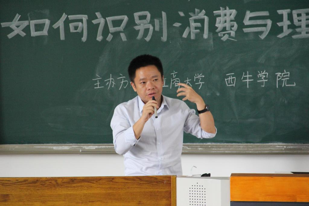 随后,黄立龙经理为在座学生带来了《杜绝“贷”“贷”相传,合理规划消费理财》的讲座。他从“校园贷”的概念与发展历史、“校园贷”的种类与变异,怎样提高风险意识、防范风险,树立正确消费理财观等四个方面出发,用切实生动的语言告诫大学生应该结合自身情况合理消费并对身边的各种“校园贷”提高警惕。