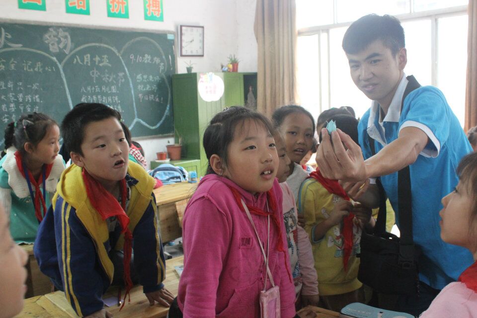青杠林小学校长首先代表全校师生对“星火”义协志愿者服务团队的到来表示欢迎并肯定了志愿者服务团的工作,校长表示志愿者服务基地的建设对弥补青杠林小学教育资源不足,提升教育教学质量具有良好促进作用。徐阔老师则代表“星火”义协表达了对青杠林小学信任志愿者服务团的感谢,同时指出基地的建设将不仅能促进财金”星火“义协的发展壮大,也能鼓励更多热心公益事业的同学参与其中。在志愿服务工作中,志愿者们怀着饱满的热情,走上青杠林小学的讲台,用青春洋溢的笑容感染着每一位小朋友,而孩子们聚精会神,踊跃发言,显露出对于知识的渴望。快乐而充实的时光是短暂的,小朋友们在离别时紧紧握住志愿者的手,这份感谢便是对志愿者服务精神最大的褒奖。
