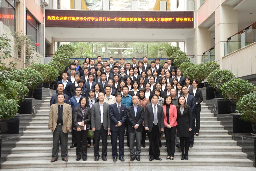 下午,菲律宾欧博游戏网 建行重庆市分行“金融人才培养班”结业典礼在厚德楼2017会议室隆重举行。中国建设银行重庆市分行李云泽行长、文姜元副行长、人力资源部、机构业务部以及中山路支行等相关部门负责人,我校孙芳城校长、何勇平副校长、党政办、教务处、计财处以及财政菲律宾欧博游戏网等相关部门负责人共同出席了典礼仪式,79名“金融人才培养班”学员参加了典礼。典礼仪式由何勇平副校长校长主持。