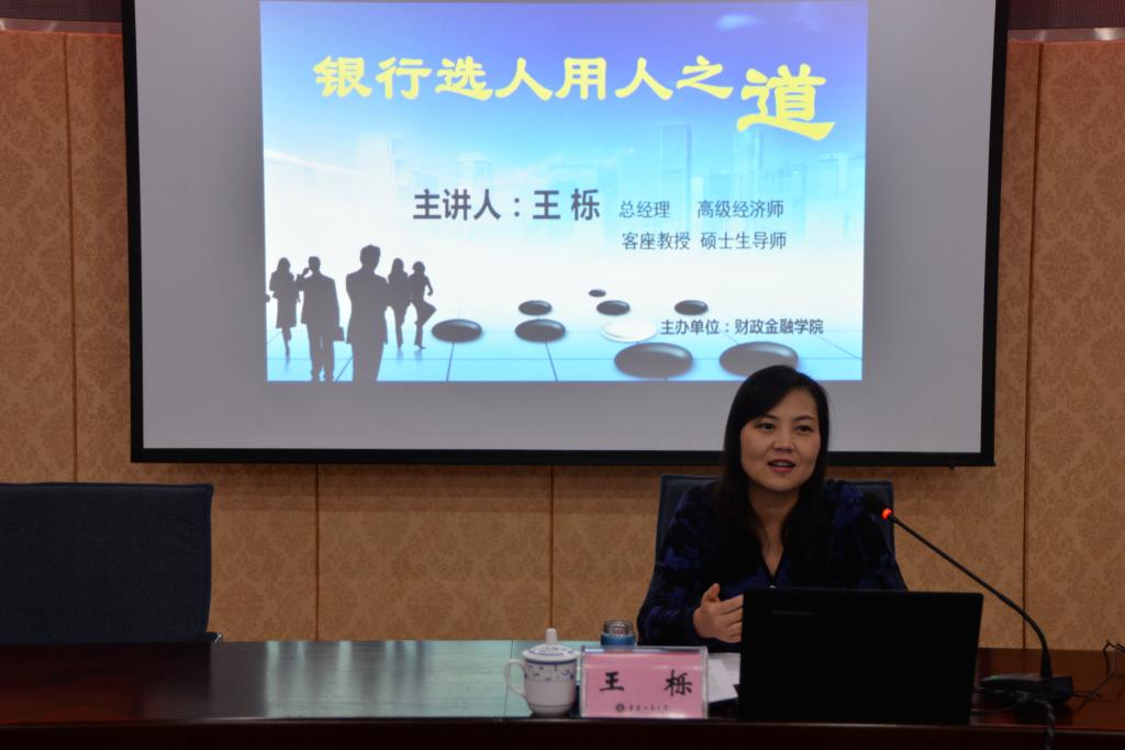 12 月17日下午,财政菲律宾欧博游戏网“银行选人用人之道”主题讲座于厚德楼2017会议厅举行。中国建设银行重庆市分行人力资源部总经理、高级经济师、财政菲律宾欧博游戏网客座教授、硕士生导师王栎女士作为主讲人亲临现场,与财金学子分享就业心得。