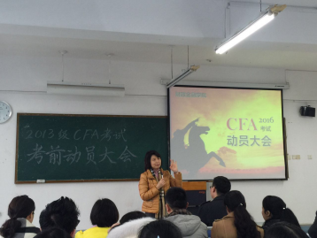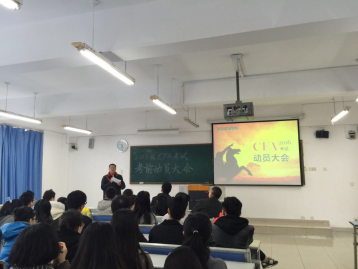 大会首先由李云龙先生对目前同学们的情况进行总结,并对同学们进行了鼓励,希望大家调整心态,投入到考试复习中,积极备考。然后,莫云副院长就开学举办的CFA知识竞赛进行了总结,公布获奖名单,同时鼓励同学们再接再厉,在接下来的时间里取得更优异的成绩。紧接着毛跃一副院长宣布了学院关于CFA项目激励机制管理办法,使同学们学习的积极性进一步提高。随后的时间,融仕国际的两位讲师程老师以及滕老师先后发言,为同学们强调了CFA学习的重点和方法,并鼓励大家全身心投入到复习,努力取得好的成绩。之后,12级CFA的龚会淋同学结合自身经历,为同学们总结了复习的关键的方法,让同学们获取了更多的经验来准备接下来复习。13级CFA学生代表南方杰同学也代表全体13级同学发言,表明了同学们在未来备考和考试中的决心的信心,争取创造一个更优异的成绩。最后杨萍书记进行总结讲话,通过四句话总结了对于同学们和要求和期待,并希望同学们都能取得满意的成绩。