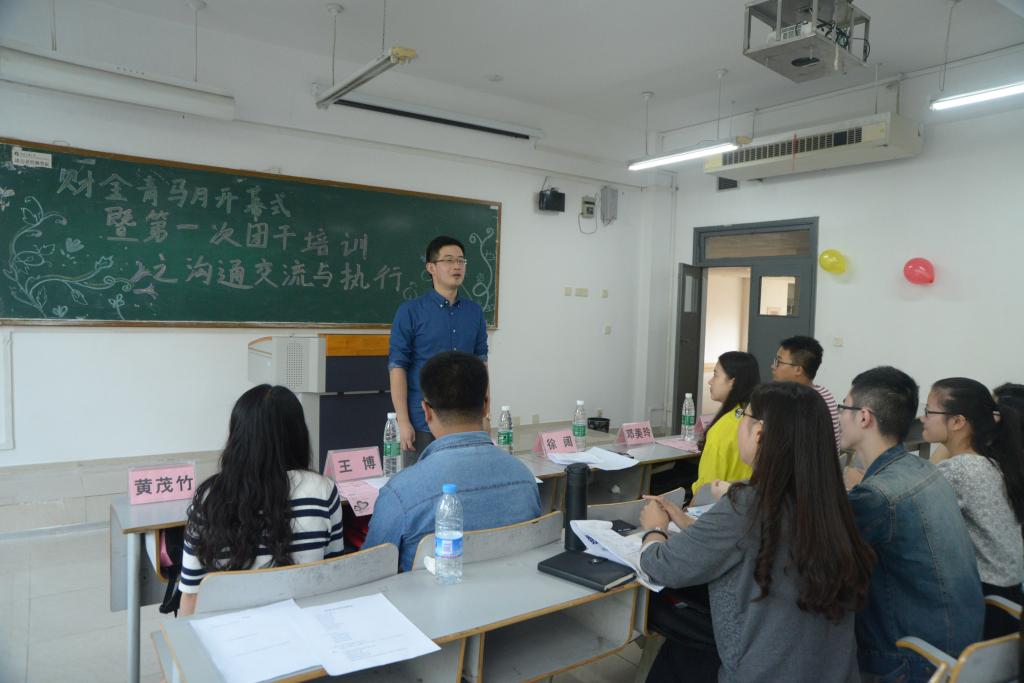 为了提高学生干部队伍的整体协作力与执行力,10月15日中午,财金青马月系列活动之“双UP”团干培训计划第一期“沟通交流与执行”于07312教室举行。财金学院党总支副书记刘代成,分团委书记徐阔莅临现场,与全体学生会干部及13、14、15级的班团代表展开面对面的沟通与交流。
