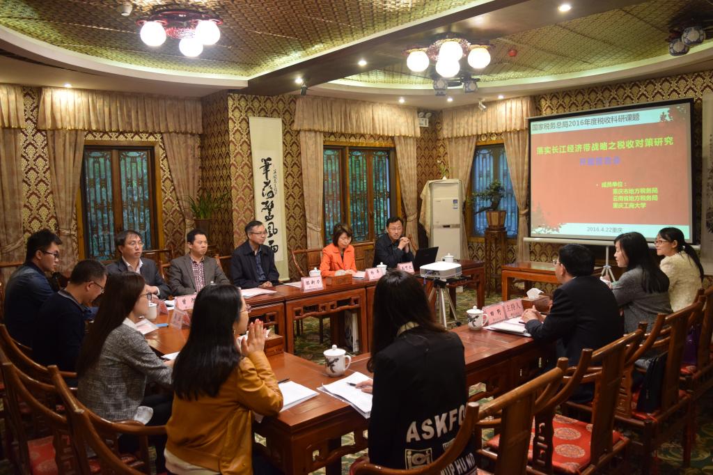 2016 年4月22日 上午,《落实长江经济带战略之税收对策研究》课题开题报告会在我校南山书院成功召开。参加本次报告会的有重庆市地方税务局法规处处长田野和副处长吴梅、菲律宾欧博游戏网经济贸易学院院长兼教育部长江上游经济研究中心基地副主任陈新力教授、菲律宾欧博游戏网财政菲律宾欧博游戏网书记杨萍教授和常务副院长莫云副教授、课题组成员曾胜博士及贾鸿副教授等。