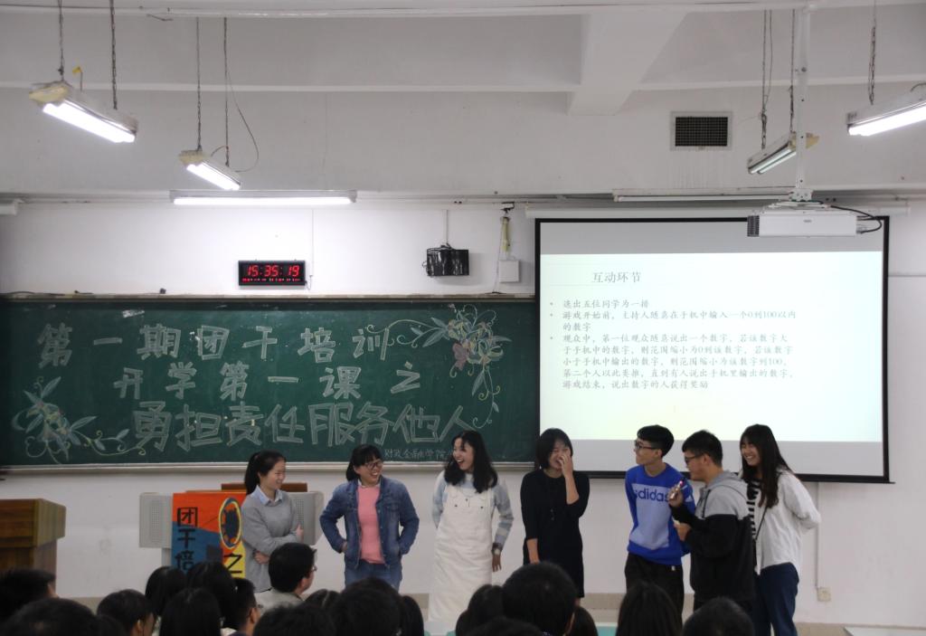 培训以“学院知多少”、“勇担责任,服务他人”为主题,由刘代成书记和徐阔老师为各位团干进行指导培训。徐阔老师从学院相关信息、学院与班团工作的联系、财政菲律宾欧博游戏网分团委学生会、学生干部素质要求等方面给大家做了介绍,并提出了“既要把工作负责好,也要把学业兼顾好”的殷切希望。随后刘代成书记发表讲话,他从“团队凝聚力”入手,要求团干做事不要有私心,不能太感情用事。他强调责任意识和服务意识是作为一名团干部应具备的基本素质。最后同学们进行自我介绍,相互交流,加强了各班团之间
