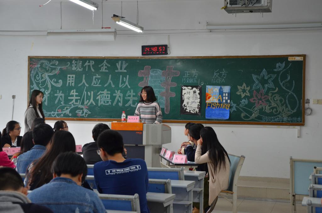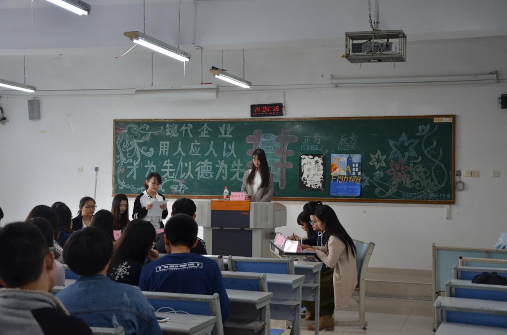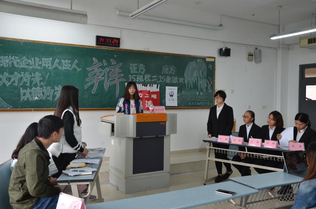 双方就本次的辩题——“现代企业用人究竟是应该以才为先还是以德为先”, 展开激烈的辩论和深妙入微的剖析。此次辩论赛共经双方一辩立论,二辩盘问,三辩对问,四辩结论四个环节。各个选手依据自身辩位特点,巧妙配合,凸显本方论点。正方开篇点明主题:“公司招聘简历都是看中个人才能”,以此推出多角度的例证。反方也提出了相应的“以德为先”的论点,认为现代企业用人这句话有两个基本点——“现代”和“人”,既现代企业是有抱负的,人的德行重于才能。紧接着进入驳辩环节,双方辩手言辞犀利,提出了一个个鲜明且具有说服力的例子。自由辩论环节,辩手们更是妙语连珠、佳句迭出。最后,15级税收二班和16级CFA获胜,晋级决赛。