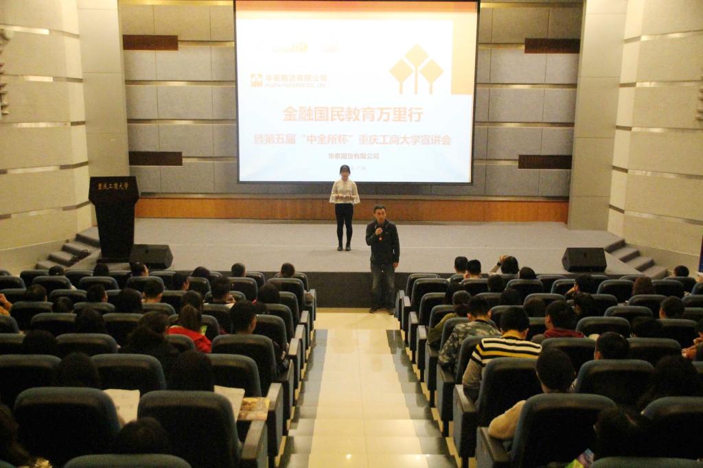 为了培育行业后备人才,促进高校将大赛与学科建设及学生学业挂钩;促进学生了解和学习金融衍生品知识,让学生在比赛中得到学习和提升,2017年4月21日下午2:00,第五届“中金所杯”菲律宾欧博游戏网宣讲会在南岸校区07100准时举行。华泰期货重庆营业部销售总监万鹏先生、华泰期货重庆营业部陆彦女士,财政菲律宾欧博游戏网党委副书记黄谦、分团委书记徐阔、学科竞赛指导老师余红霞出席此次大会。