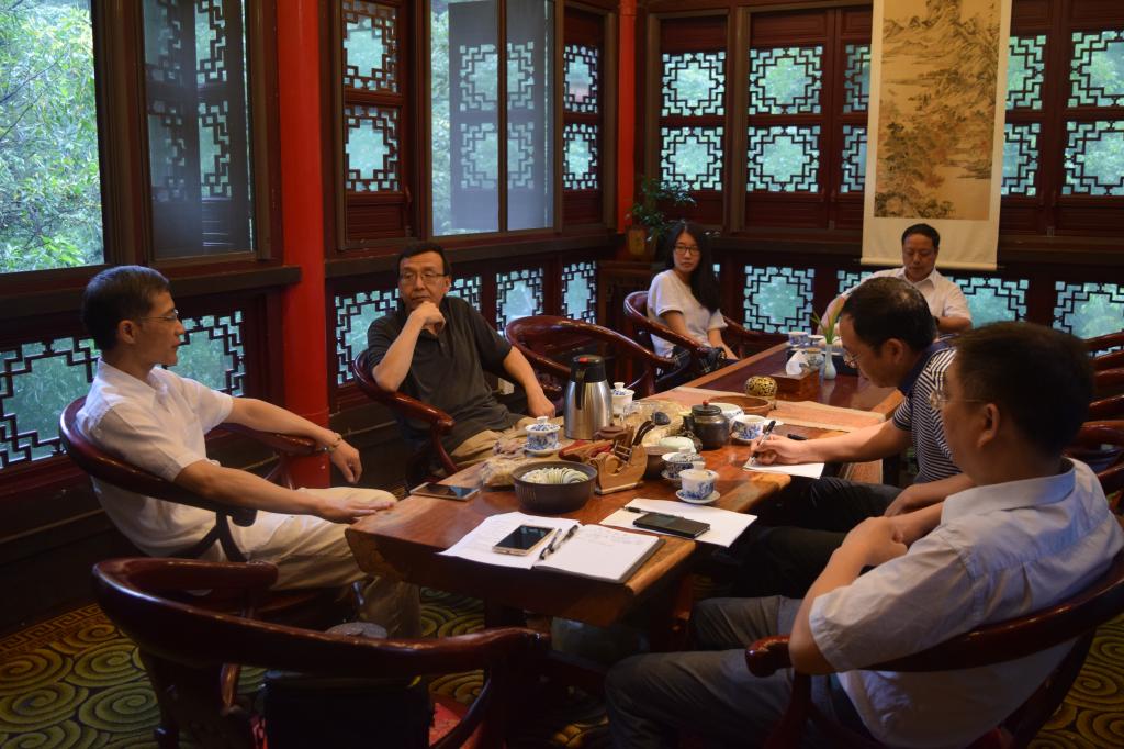 6月25日上午,南山书院语仙阁,学校副校长陈云超教授同西南大学校长助理周光明教授,以及周助理引荐来的华尔街资深操盘手、美国耶鲁大学博士吕秋强教授座谈。学院院长刁孝华教授、副院长曾胜教授出席。