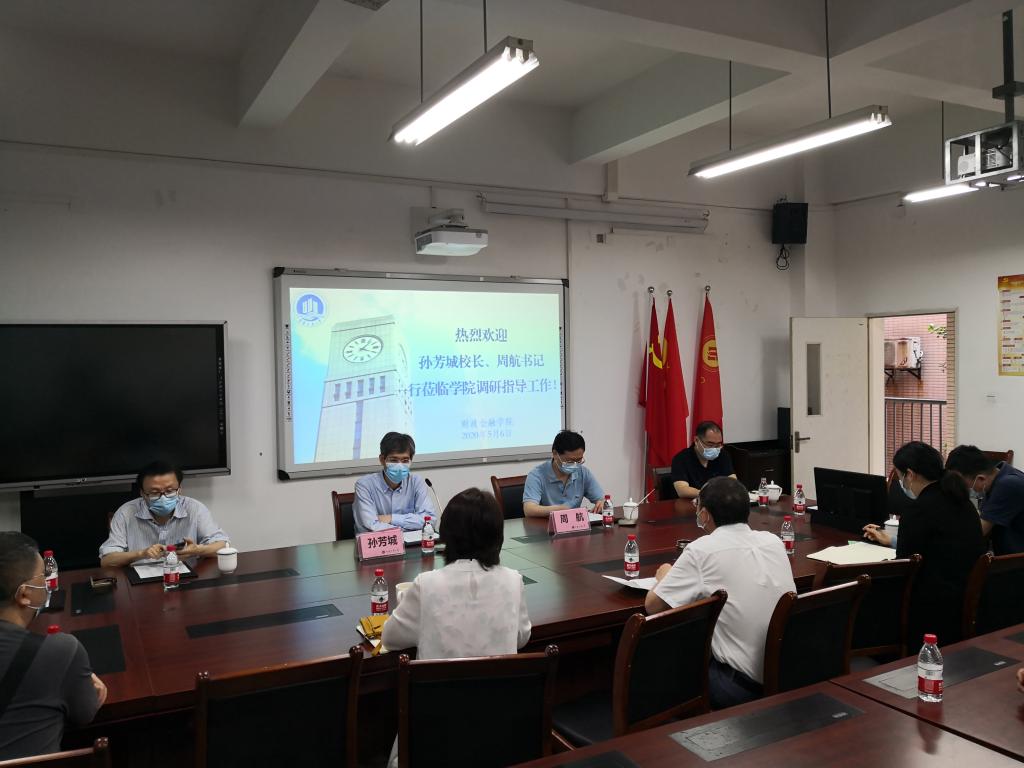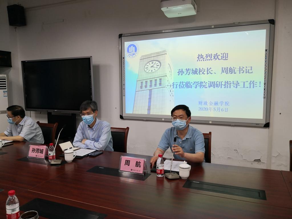 5月6日上午,校长孙芳城、校纪委书记周航一行到财政菲律宾欧博游戏网调研指导学科建设和疫情防控工作,并在田家炳313会议室召开调研座谈会。教务处处长靳俊喜,研究生院院长田双全,以及学院领导、各系主任、财税系全体教师和部分辅导员参加了会议。