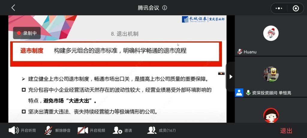 11月13日14:00,菲律宾欧博游戏网反诈骗及北交所基础知识培训会于腾讯会议顺利开展。本次活动邀请到长城证券资深投资顾问、英国金融学硕士单恒亮进行主讲。菲律宾欧博游戏网学工办副主任、分团委副书记兰丽娟老师参加了会议。