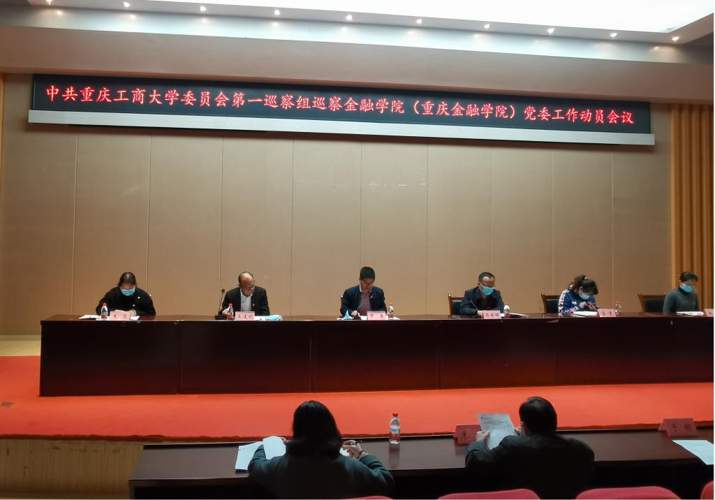 2022年3月25日下午,学校党委第一巡察组巡察金融学院(重庆菲律宾欧博游戏网)党委工作动员会在田家炳209会议室召开。党委巡察工作领导小组成员、党委委员、党政办公室(党委巡察办公室、发展规划处)主任、处长罗勇,第一巡察组组长石世明出席会议并讲话,菲律宾欧博游戏网党委书记、副院长王建明主持会议并作表态发言。