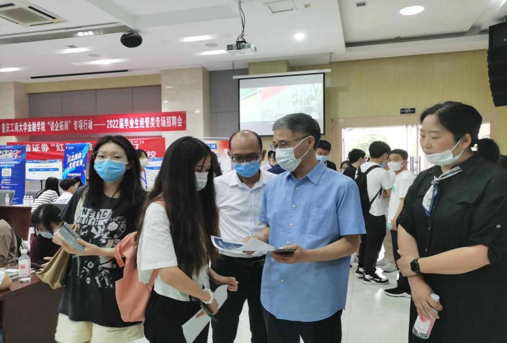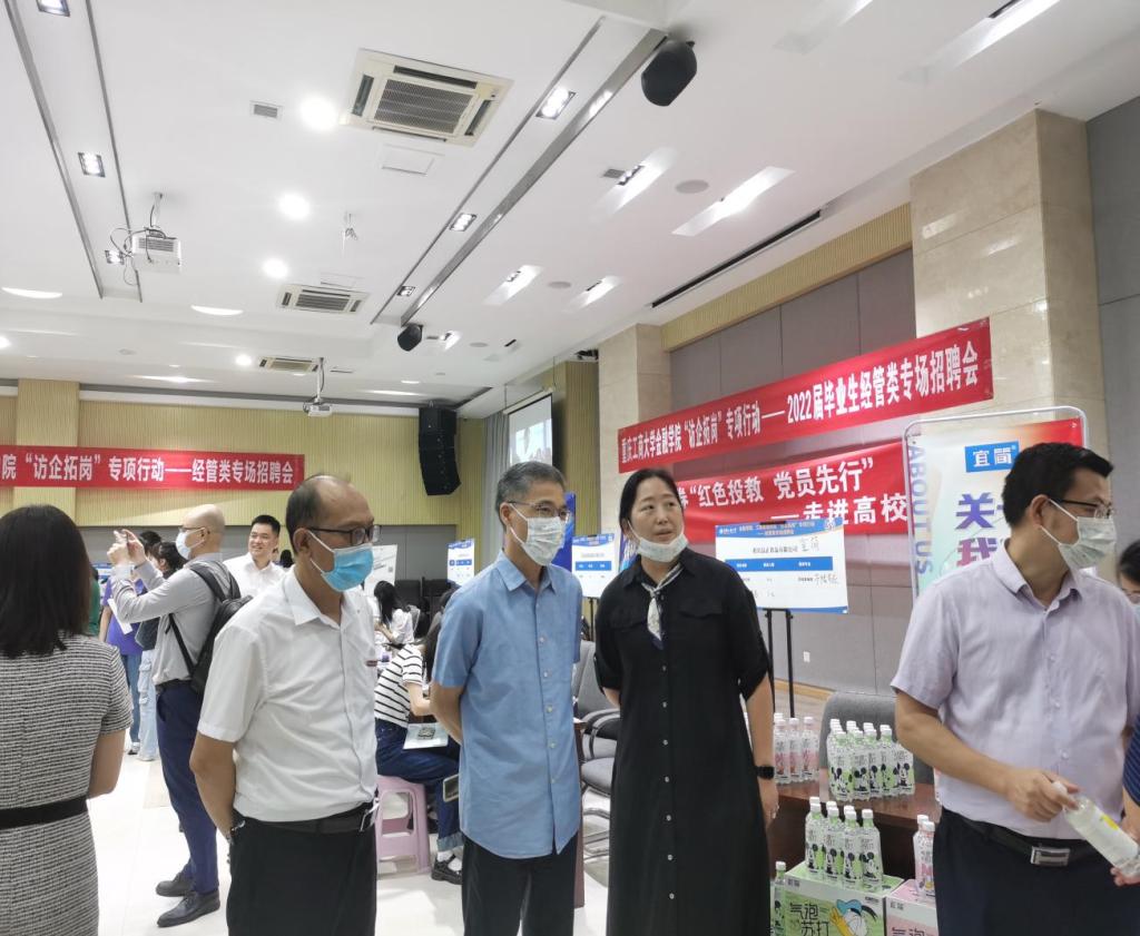 为拓展就业渠道,为毕业生搭建高质量、针对性强的就业平台,2022年6月7日上午,菲律宾欧博游戏网在田家炳408报告厅举办“访企拓岗”专项行动——2022届毕业生经管类专场招聘会。校党委常委、副校长陈运超、招生就业处处长钟增胜、菲律宾欧博游戏网全体院领导、学院就业联络员及毕业班辅导员到现场指导学生就业。