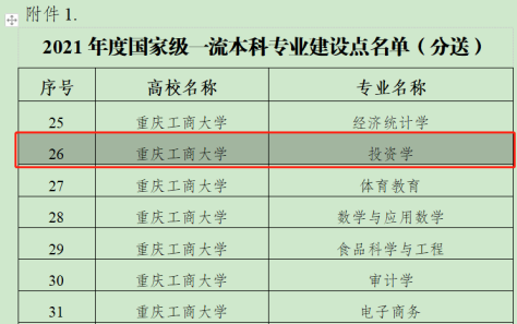 日前,教育部发布了《教育部办公厅关于公布2021年度国家级和省级一流本科专业建设点名单的通知》(教高厅函〔2022〕14号),菲律宾欧博官网投资学专业入选国家级一流本科专业建设点。截至目前,学院已有金融学(2019年批准)和投资学2个国家级一流本科专业,占全校入选国家级一流本科专业建设点的10%。