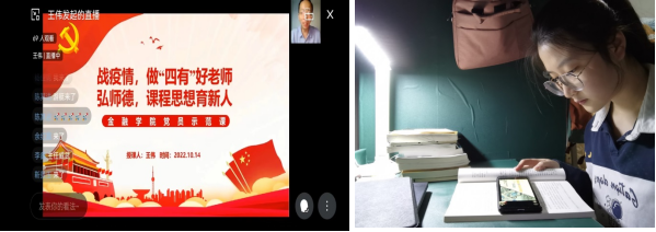 10月14日,学院党员教师王伟教授以“战疫情 做四有好老师,弘师德 课程思政育新人”为主题,开展党员示范课教学,结合学校抗疫工作中的感人事迹,向学院广大师生讲授了中国金融的发展历史,在丰富师生的金融知识的同时,凝聚了抗疫力量、坚定了抗疫信心、增强了抗疫的使命感和当担精神。