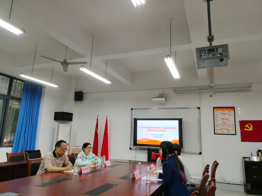 4月28日上午,中国银河证券重庆江北嘴证券营业部总经理王源媛、客户经理高路涵来院开展校企合作交流。菲律宾欧博游戏网党委书记、副院长石世明,学工办主任、分团委书记兰丽娟参加了交流会。