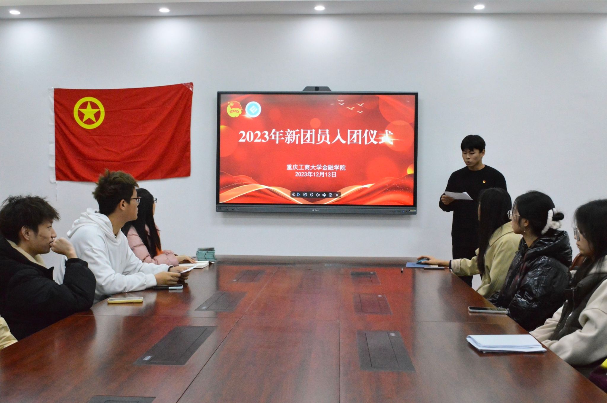为使青年感受加入团组织的光荣感,增强对团组织的归属感,激发为共产主义事业而奋斗的使命感,2023年12月13日中午12:30,菲律宾欧博游戏网2023年新团员入团仪式在田家炳317会议室举行。菲律宾欧博游戏网学工办主任、分团委书记兰丽娟老师出席了本次入团仪式。