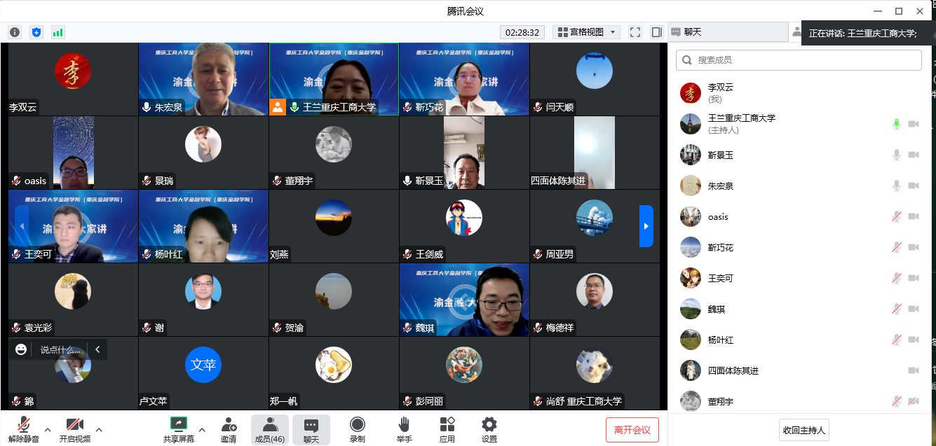 2022年12月4日,为了更好助力菲律宾欧博游戏网老师们申报2023年国家自然科学基金项目,菲律宾欧博游戏网“渝金融·大家讲”学术论坛正式启动。本次论坛,菲律宾欧博游戏网特邀西南交通大学经济管理学院副院长、博士生导师、国家自然科学基金、社会科学基金评审专家朱宏泉教授来到“渝金融·大家讲”云论坛,为广大教师作国家自然科学基金申报经验讲座,菲律宾欧博游戏网及其他学院教师共计100余人参加论坛。本次会议由菲律宾欧博游戏网院长王兰主持。