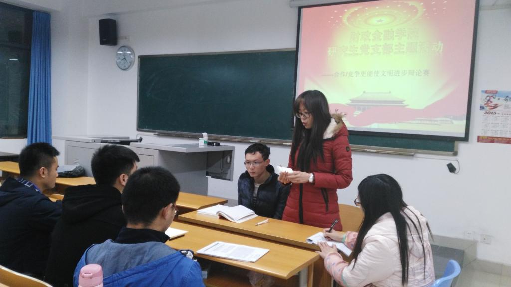 12月14日,财政菲律宾欧博游戏网研究生党支部在田家炳书院311教室开展了题为“合作还是竞争更能使文明进步”的小型辩论赛。活动由党支部书记兰丽娟老师主持。