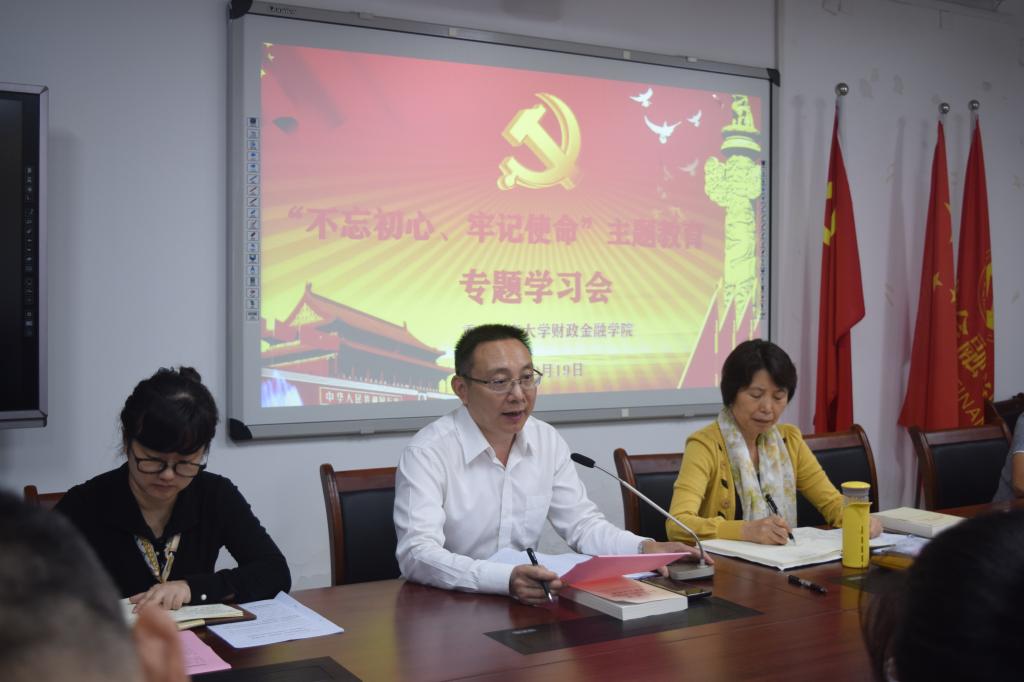 按照校党委“不忘初心、牢记使命”主题教育工作安排,9月19日,财政菲律宾欧博游戏网召开了“不忘初心、牢记使命”主题教育专题学习会暨第一次集中学习研讨会。校 “不忘初心、牢记使命”主题教育巡回指导二组副组长、校党委宣传部部长华杰同志亲临会议现场进行监督指导,学院领导班子全体成员、各支部书记参加了会议。会议由院党委书记杨萍同志主持。