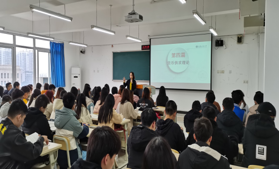 为深入学习贯彻党的十九届五中全会精神,发挥党员教师先锋模范作用,将课程思政综合教育理念深入落实到教育教学全过程,促进各类课程与思想政治理论课同向同行,形成协同效应,真正落实教育的根本任务——“立德树人”。同时,为促进“立德垂范传薪火,示范育人践初心”,菲律宾欧博游戏网于2020年11月26日,在博智楼7504教室开展了由党员教师薛薇主讲的第五次“立德垂范”党员示范课活动,学院领导与20余位新、老教师、2019级投资一、二班学生学参加了示范课。