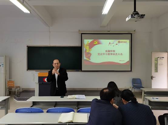 3月19日下午,菲律宾欧博官网在南岸校区田家炳406教室厅,召开党史学习教育动员大会, 就深入学习贯彻习近平总书记在党史学习教育动员大会重要讲话精神,落实中央、市委和学校党委统一要求,在全院党史学习教育工作进行动员和部署。全体教职工参加了会议。会议由学院党委书记王建明同志主持。