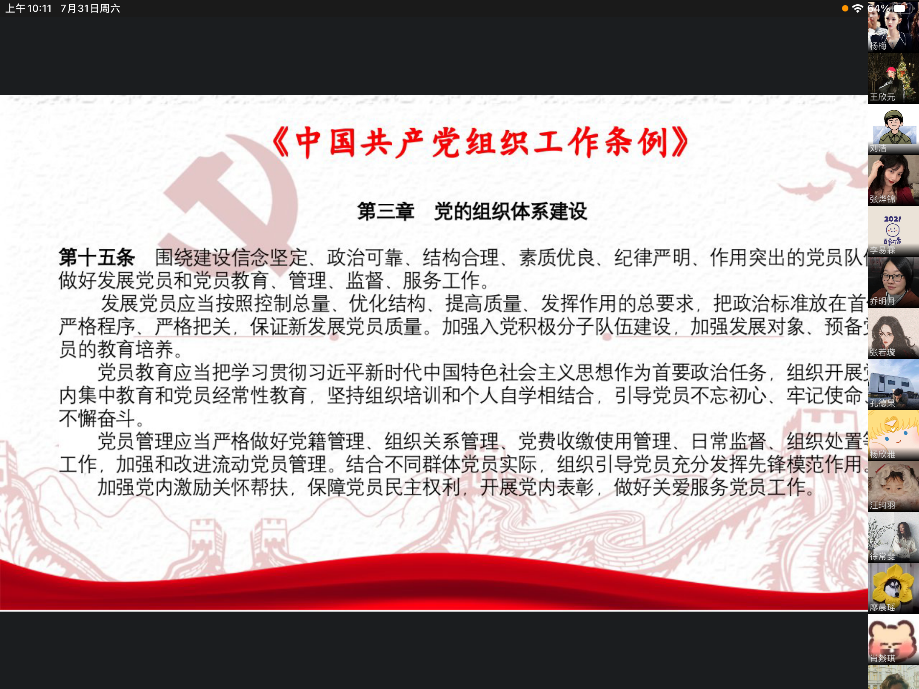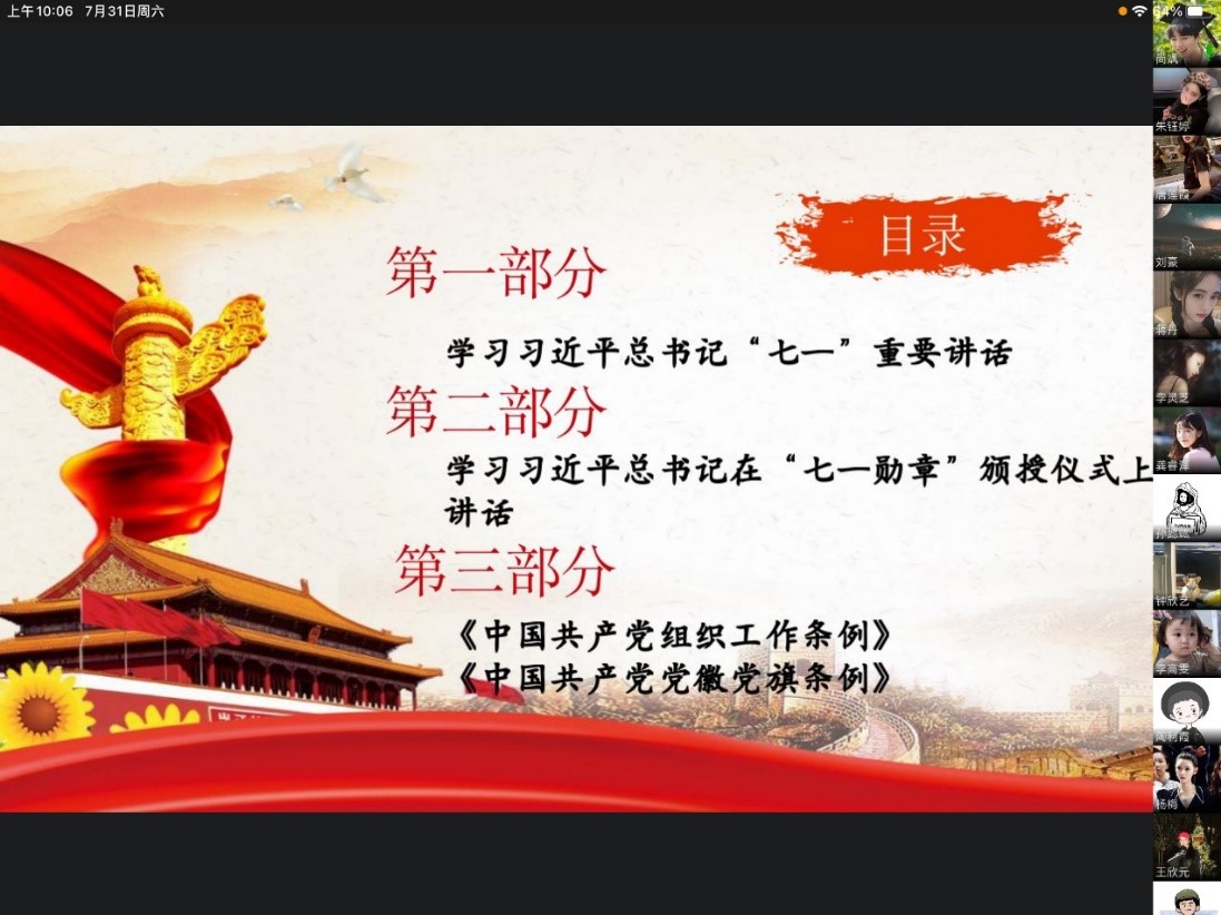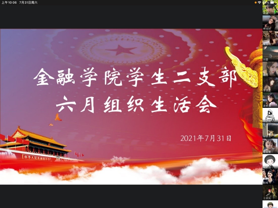 2021年7月31日星期六上午十点,菲律宾欧博游戏网学生第二党支部以企业微信线上会议的形式召开了七月的支部组织生活会。出席本次会议的成员有菲律宾欧博游戏网学生第二支部书记乔明月老师及其他党员同志、预备党员同志。二支部应到35人,实到30人。
