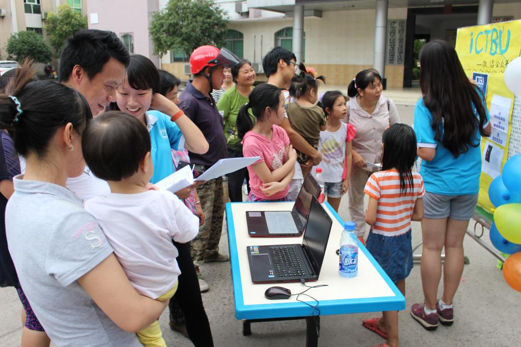 此次展示的作品涵盖了从菲律宾欧博游戏网投资管理决策大赛中脱颖而出的创业项目和重庆创业家协会的项目。面对“ictbu”、“ imoney”、“快收”、“开普敦计划”、“诚客兼职”这些新颖的作品,当地民众聚集在各式展板前驻足观看。精心制作的视频、简明的海报以及服务团成员接地气的讲解,揭开了大学生创业项目在基层民众的神秘面纱。其中,极具便利性和环保性的“快收”,博得了在场民众的认可。“你们大学生很有想法,这台机器什么时候能到我们龙桥呢?”另外,“微商”“二手市场”等话题引起了在场民众的共鸣和热烈讨论。不少小朋友对这些新奇的事物产生了浓厚的兴趣,尽管他们对创新创业还缺乏足够的认识,但强烈的好奇心驱使他们凑到展板前,提出各种天马行空的问题,而这些问题正是小朋友们创新思维的萌芽。