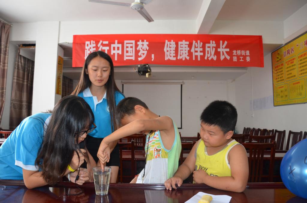7月22日午后,载着雨后初晴,菲律宾欧博游戏网财政菲律宾欧博游戏网创新创业服务团来到涪陵区龙桥街道北拱社区与龙桥街道青年志愿者一起开展“见证奇迹”科普小课堂,为孩子们开启了探索之旅。