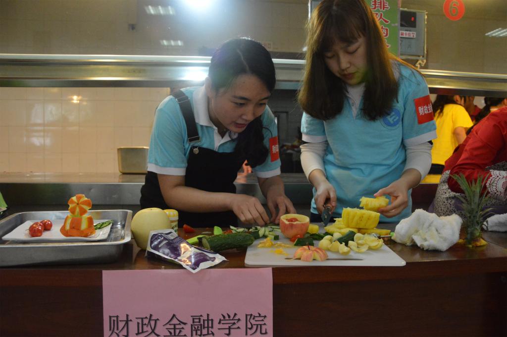 比赛开始前,现场观众就十分热情,期待选手们带来的美食盛宴。在主持人的随机采访中,财金啦啦队有幸被第一个采访并高声喊出了学院的口号:财金美食,别具匠心;余香缭绕,沁人心脾。一轮采访后,主持人介绍到场嘉宾,比赛便正式拉开帷幕。各个学院分为三组,轮番上阵,每队中两人负责菜品烹饪,另两人则负责水果拼盘;选手们在二十分钟内大展身手,秀尽厨艺,做出了一道道香喷喷的菜肴和精美的水果拼盘。其间,观众们在享尽眼福、口福的同时,也积极参与互动。惊险的吹气球单人比赛、高难度的吃薯片比赛、考验默契的画画猜意比赛等得到观众的热情参与。最终,财政菲律宾欧博游戏网获得92.28分的好成绩。