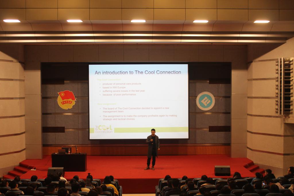 大赛开幕仪式于2017年12月2日菲律宾欧博游戏网博智楼7100顺利举行,为帮助同学们了解此次比赛,徐玫老师及高静凯学长在开幕式后为大家进行了赛前培训,培训分为上下午两场,共139组参赛队伍参与其中。12月3日至7日为初赛阶段,由全体参赛队伍线下分散进行。此轮比拼后,前30支队伍晋级半决赛。12月8日下午,半决赛与决赛于旧图书馆四楼重庆智能金融实验与实践中心正式拉开帷幕,来自各个专业的三十支优秀队伍在此进行最后角逐。正所谓单丝不成线,独木不成林,参加比赛的各支队伍通力合作,各队队员积极讨论,为团队决策出谋划策。最终,前六强也在决赛中产生。12月12日,大赛表彰大会拉开帷幕。来自本次大赛三十强的六支队伍代表分别从整体策略、各部门策略以及参赛时的时间把控等方面向与会人员分享了他们参加此次大赛的经验与感受。随后,刁孝华院长做总结讲话。大会最后为我们揭开了优胜者的神秘面纱,25号队、106号队以及116号队获得了本次大赛的三等奖,15号队和130号队获得二等奖,而一等奖则由38号队伍获得,同时他们也获得了直通荷兰与全球学生同台竞技的机会。希望他们能继续努力,在全球舞台上展现工商学子的风采。