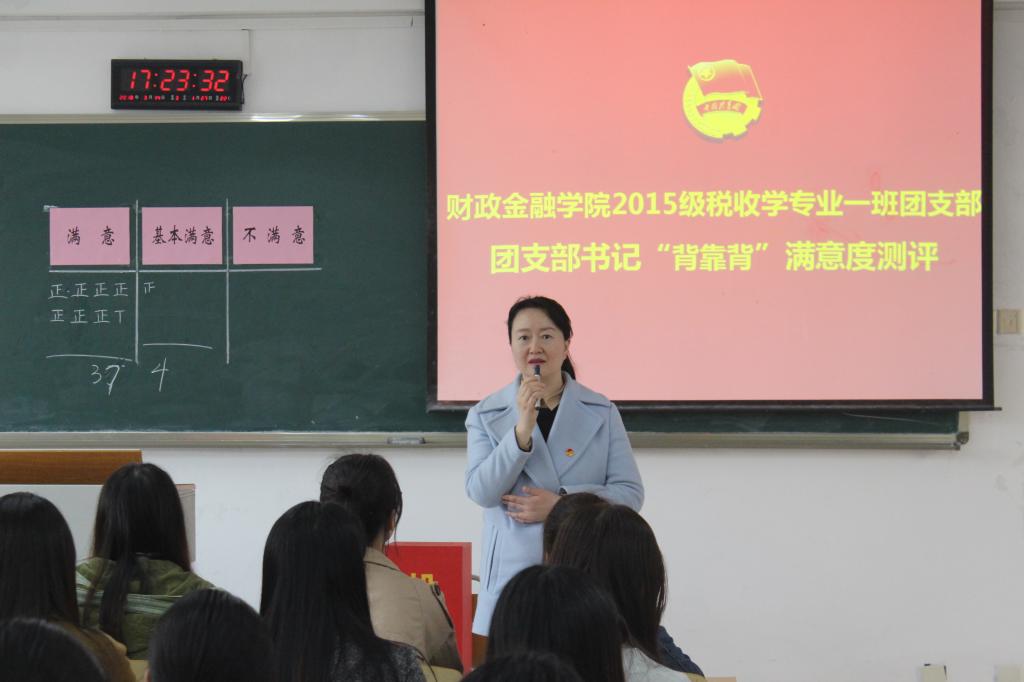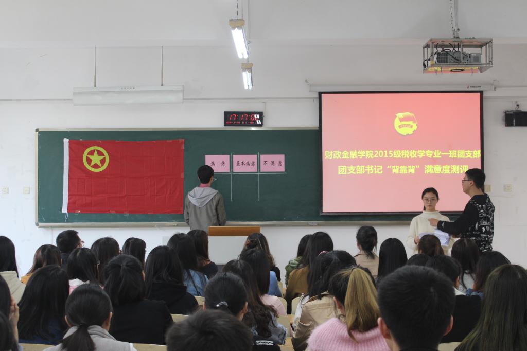 为夯实基层团支部群众基础,做好团支部建设工作,3月14日下午,菲律宾欧博游戏网财政菲律宾欧博游戏网税收学专业2015级一班团支部在70202教室开展了对团支书刘菊同学的“背靠背”满意度现场集中测评。团市委高校工作部副部长、调研员李霞、校团委杨娟副书记、校团委陈琛老师到场观摩了此次测评。