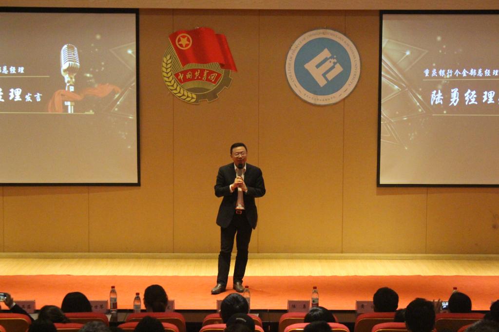 2018年4月25日晚,财政菲律宾欧博游戏网第二届“重庆银行杯”金牌营销员大赛总结暨表彰大会在田家炳209报告厅隆重举行。重庆银行个金部总经理陆勇,重庆银行个金部周璇、左其菡;财政菲律宾欧博游戏网党委书记杨萍、党委副书记黄谦、副院长王兰,金融系主任许世琴、讲师杨佳妮以及分团委书记徐阔作为嘉宾莅临了此次大会,与入围决赛的47位选手和现场观众一起回顾历时三个月的漫漫营销路。
