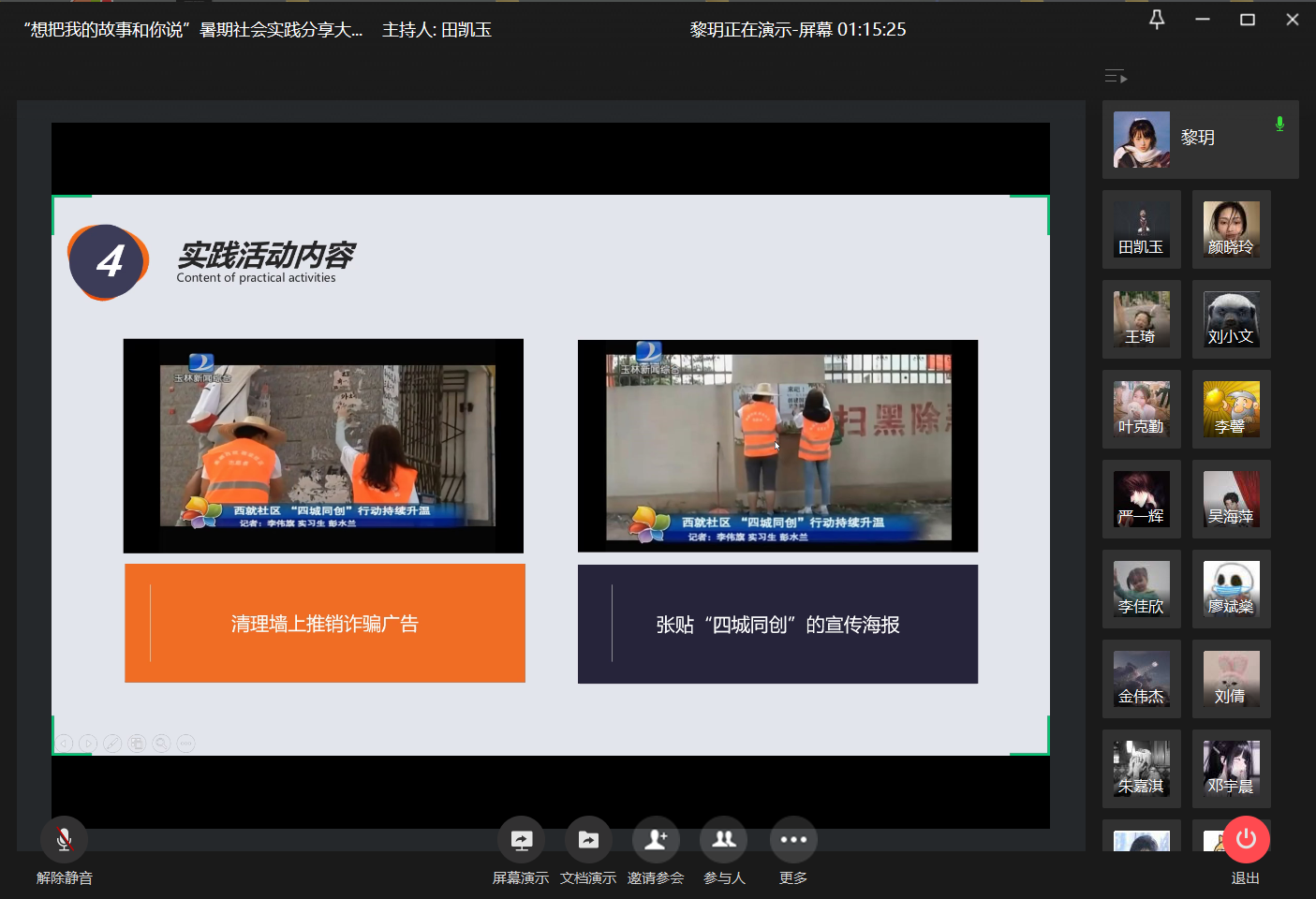 为激励同学们提炼总结暑期社会实践的所感所获所悟,共享实习实践经验,9月26日19:00,菲律宾欧博游戏网“想把我的故事和你说”暑期社会实践分享大赛于企业微信准时拉开帷幕。