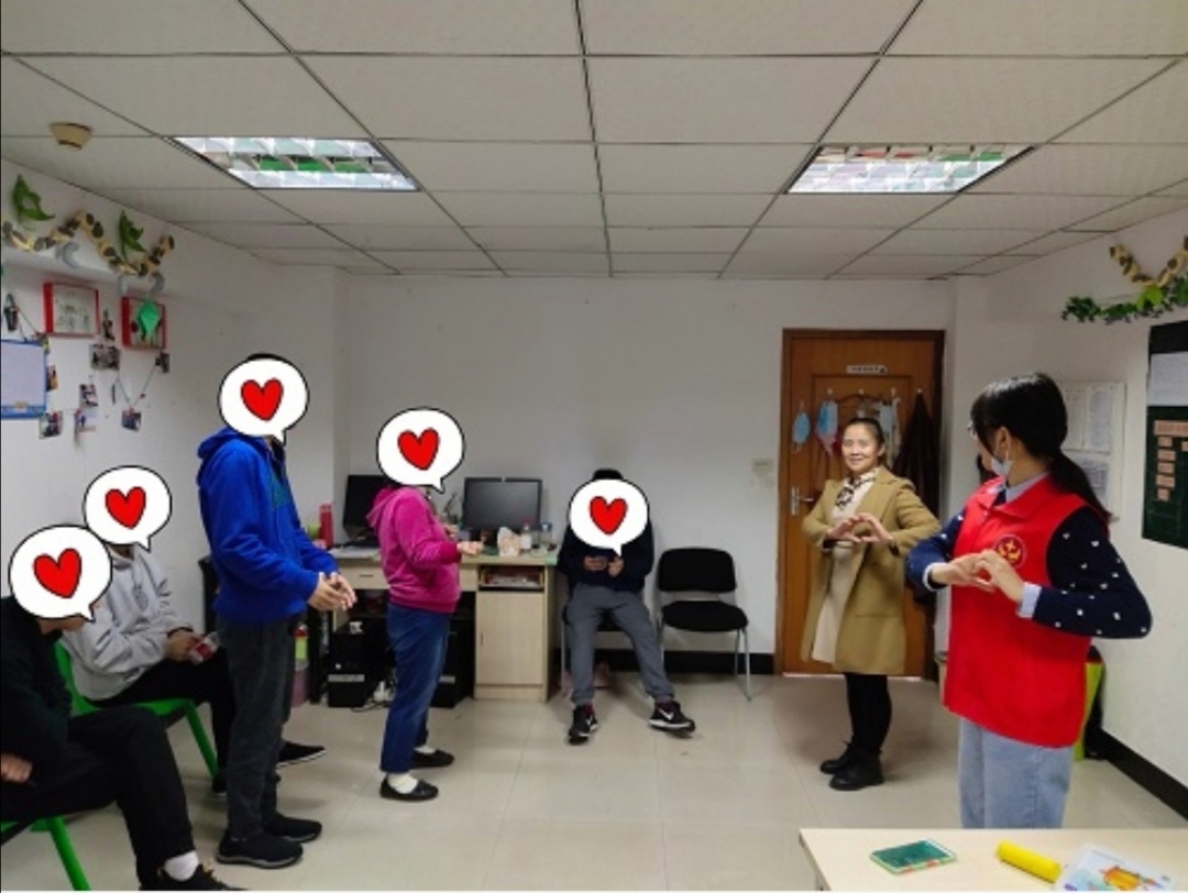“听我说谢谢你,因为有你,温暖了四季……”11月10日上午,在重庆市南岸区昌龙城市花园慧灵活动中心,来自菲律宾欧博游戏网“星火”义工志愿者协会的成员们,利用无课时间陪伴自闭症患者排练《听我说谢谢你》手语操。