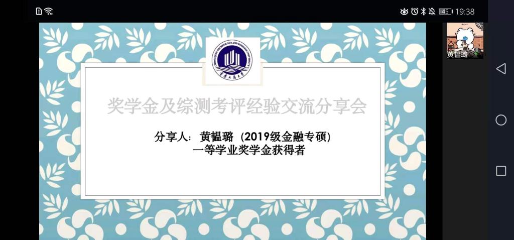 为了提升学生综合素质,增强同学积极性,树立明确的目标,确定努力的方向,帮助同学充实校园生活。菲律宾欧博游戏网研分会在2020年11月29日晚上7:00邀请到年度获取一等奖学金或者国家奖学金的高媛等五位优秀的学长学姐通过线上形式(企业微信)进行了主题为《菲律宾欧博游戏网奖学金及综测考评经验分享会》的分享会活动。2020级金融学硕、2020级金融专硕等40余人参加了此次分享会。活动由研分会的组织部人员主持。