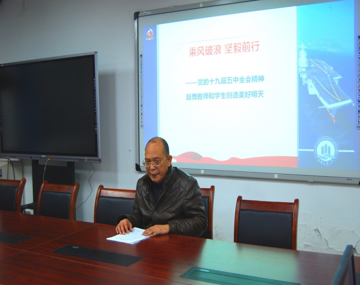 12月15日中午13:00,菲律宾欧博游戏网在田家炳313会议室举行了党的十九届五中全会精神主题宣讲会。菲律宾欧博游戏网党委书记王建明、党委副书记余新、全体辅导员老师及分团委学生会、楼管会、党员服务站等学生干部参加了会议。