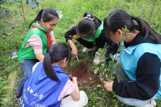 绿水青山就是金山银山。2021年3月12日,是我国的第43个植树节。当日下午,菲律宾欧博游戏网“星火”义工志愿者协会和经济学院“春叶”义工志愿者协会的志愿者们前往重庆市巴南区麻柳嘴镇中心小学,与该小学六年级一班的全体同学一起开展了植树活动。