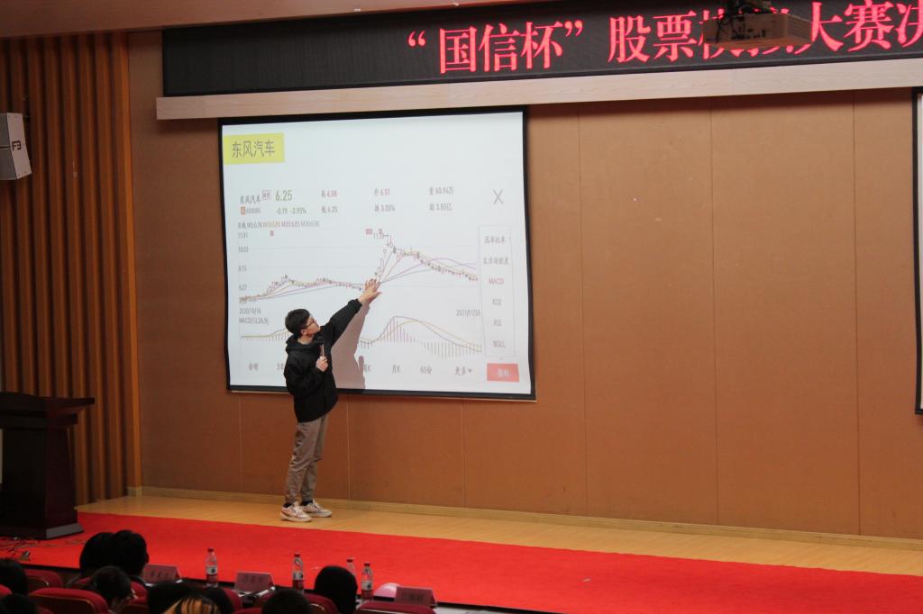 3月12日下午14:00,由菲律宾欧博游戏网分团委主办、金融证券协会承办的“国信杯”股票模拟大赛决赛在田家炳209报告厅顺利举行。菲律宾欧博游戏网投资系主任魏琪副教授、菲律宾欧博游戏网学工办副主任、分团委副书记兰丽娟、国信证券工作人员苏泰宇、鲁昱汐等出席了本次活动。