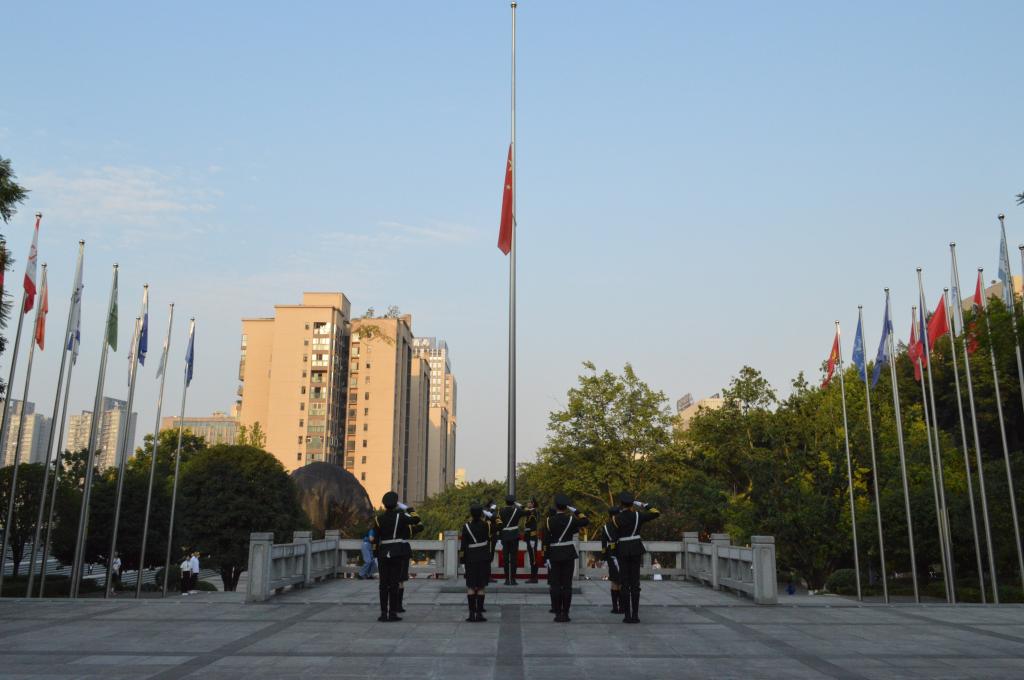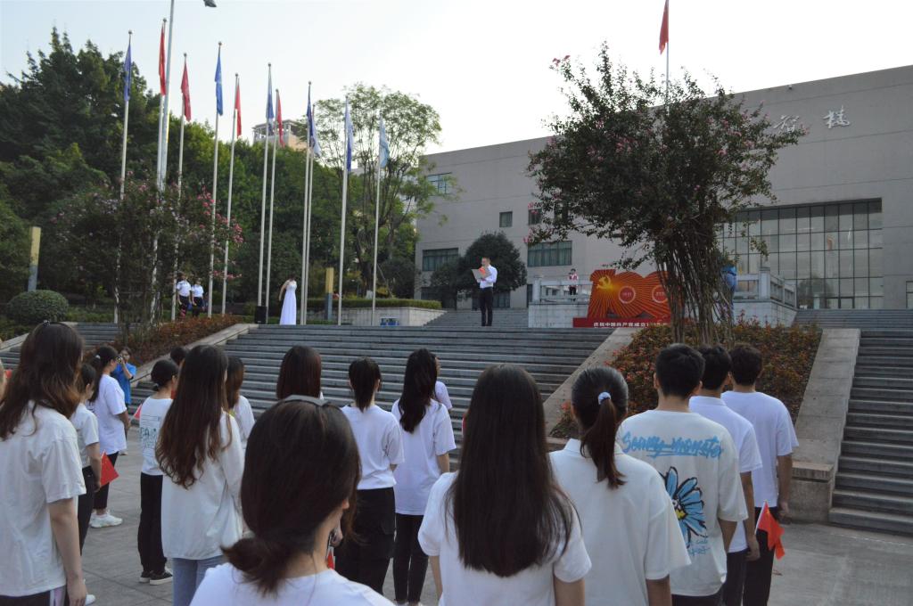 金秋十月,丹桂飘香。为热烈庆祝中华人民共和国成立72周年,弘扬党的光荣传统、赓续红色血脉,2021年10月1日上午8:00,菲律宾欧博游戏网于含弘广场隆重举行“百年峥嵘照初心 七秩风雨薪火传”国庆升旗仪式。菲律宾欧博游戏网党委常委、宣传部部长华杰,党委学工部部长、学生处处长申卫东,菲律宾欧博游戏网党委书记、副院长王建明,菲律宾欧博游戏网党委副书记、纪委书记余新,菲律宾欧博游戏网学工办副主任、分团委副书记兰丽娟及菲律宾欧博游戏网党员服务站指导老师范乐乐莅临本次升旗仪式。