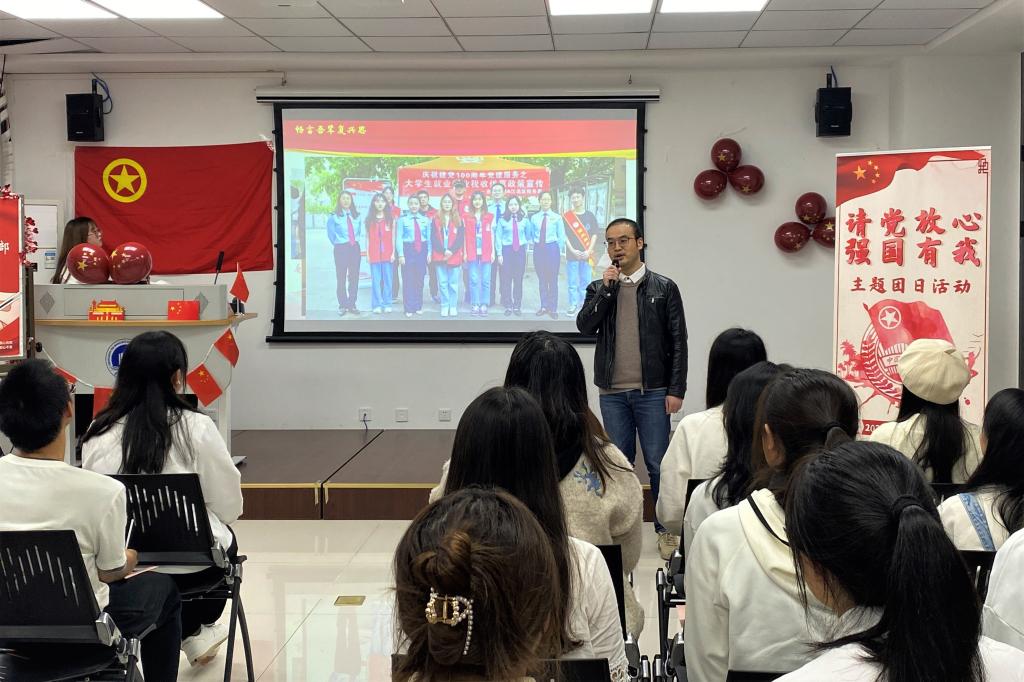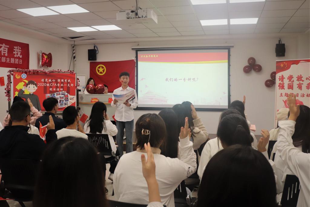 11月1日14:30,菲律宾欧博游戏网2020级CFA专业一支部于学生发展中心002会议室展开主题为“请党放心,强国有我”的团日活动。菲律宾欧博游戏网教工一支部书记黎毅,菲律宾欧博游戏网学工办副主任、分团委副书记兰丽娟及2020级CFA专业一支部全体团员参与了活动。