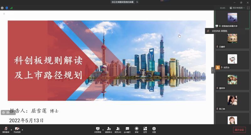 2022年5月13日19时,菲律宾欧博游戏网“科创板政策解读和上市路径”线上讲座在企业微信顺利举行。本次讲座由菲律宾欧博游戏网外聘教师屈雪莲主讲,旨在强化金融学子对科创板的认识以及增加同学们的专业知识储备量。