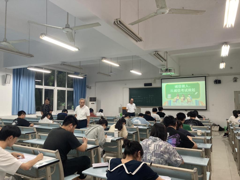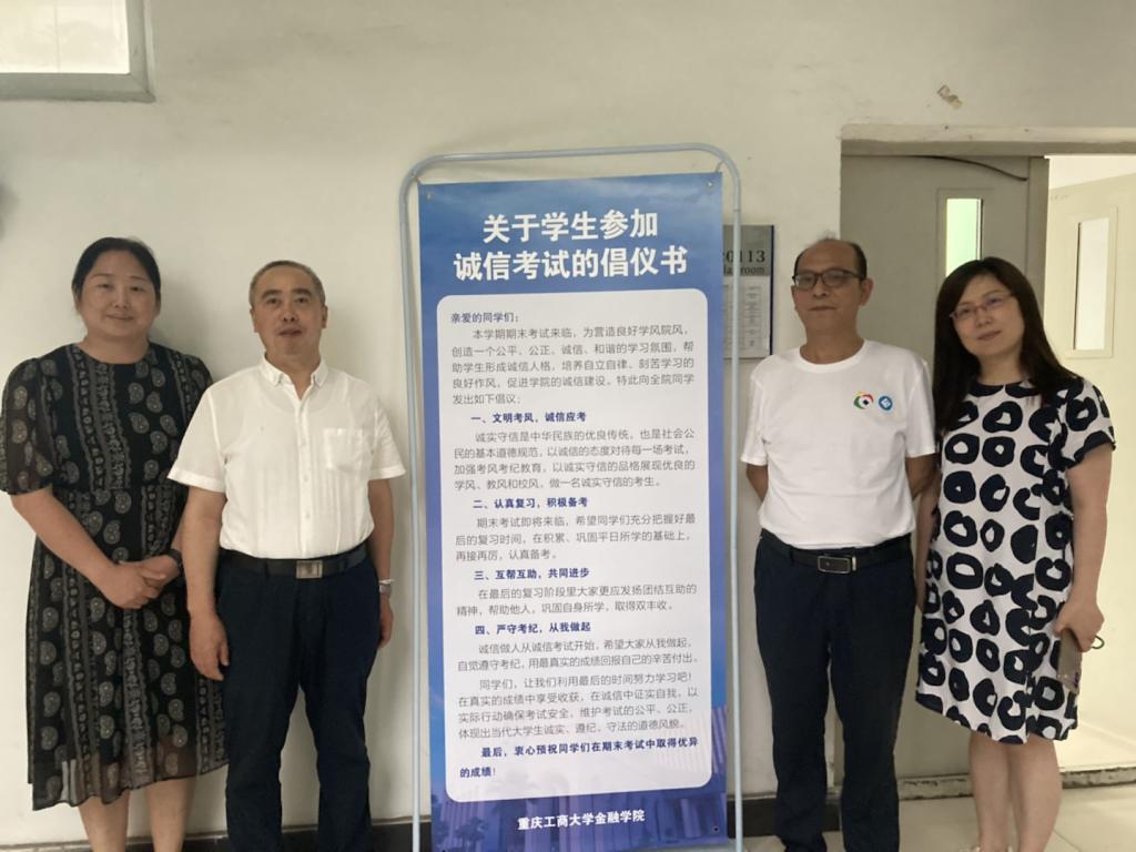2022年6月23日下午,菲律宾欧博游戏网在兰花湖校区20113教室开展第四届“免监考”诚信考试,持续推动考试思政,营造优良学风和诚信考风。参加本次“免监考”的班级为21CFA1班,考试科目为《金融学》。教务处处长骆东奇、副处长韦晓兰,菲律宾欧博游戏网党委书记、副院长王建明,党委副书记、院长王兰,党委副书记、纪委书记余新到场巡考。