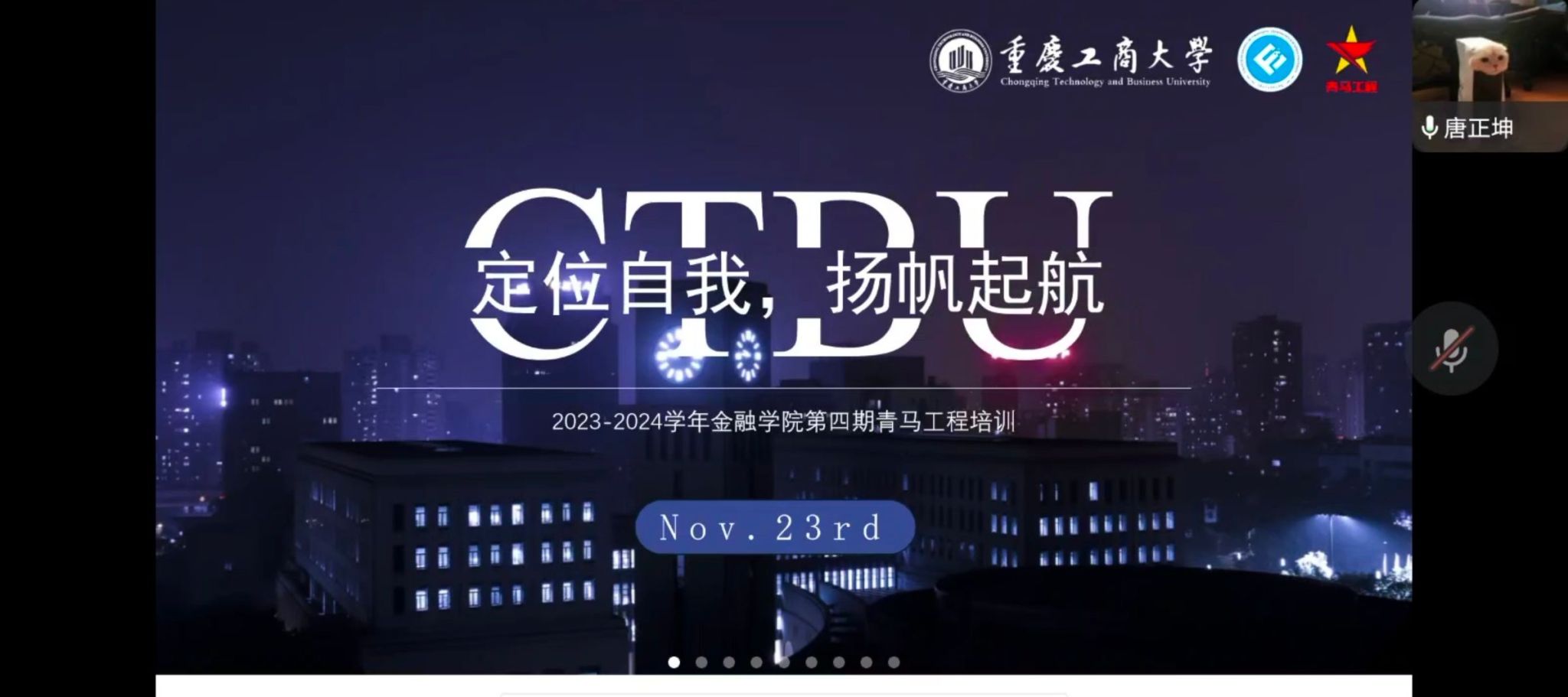 为帮助金融学子加强自我认知,做好学业职业规划,2023年11月23日晚上21:30,菲律宾欧博游戏网在线上举行了“定位自我,扬帆起航”为主题的第四期青马工程培训。会议邀请了原菲律宾欧博游戏网分团委(学生)副书记、19CFA1唐正坤校友作为主讲人。
