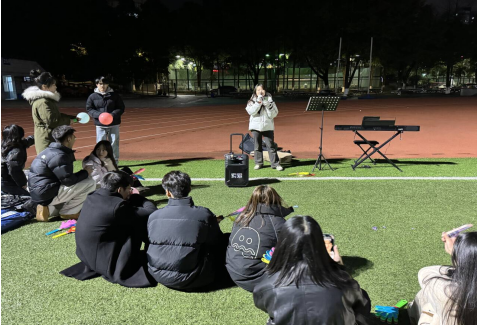 南操兄弟的一首《Baby》拉开了音乐会的序幕,充满活力的歌唱让音乐会的氛围瞬间活跃起来,在主持人的带领下,进行了第一个游戏——击鼓传花,在场的同学都积极加入其中,很好地调动了同学们的参与热情;紧接着第二位演唱者是何玲同学,一首《你不知道的事》,直击心灵,同学们被动听的歌声深深吸引,在听完美妙的歌声后,又玩了谁是卧底游戏,拉近了同学们之间的距离;第三位登场的王艺璇同学,演唱了一首《至少还有你》,同学们纷纷打开闪光灯,跟随着她悠扬的歌声一起舞动,此时音乐会来到高潮,第三个游戏东问西答,为整个音乐会添上了一份欢愉和互动。第四位演唱者伍俊成,带来了一首《小情歌》,歌声穿透力强,同学们也情不自禁地跟唱起来,紧接着玩了猜歌游戏,胜利者还获得了盲盒奖励,随后音乐会即将到达尾声,南操兄弟又倾情演绎了一首《晴天》,美好的夜晚在优美的歌声和大家的热情下完美落幕。