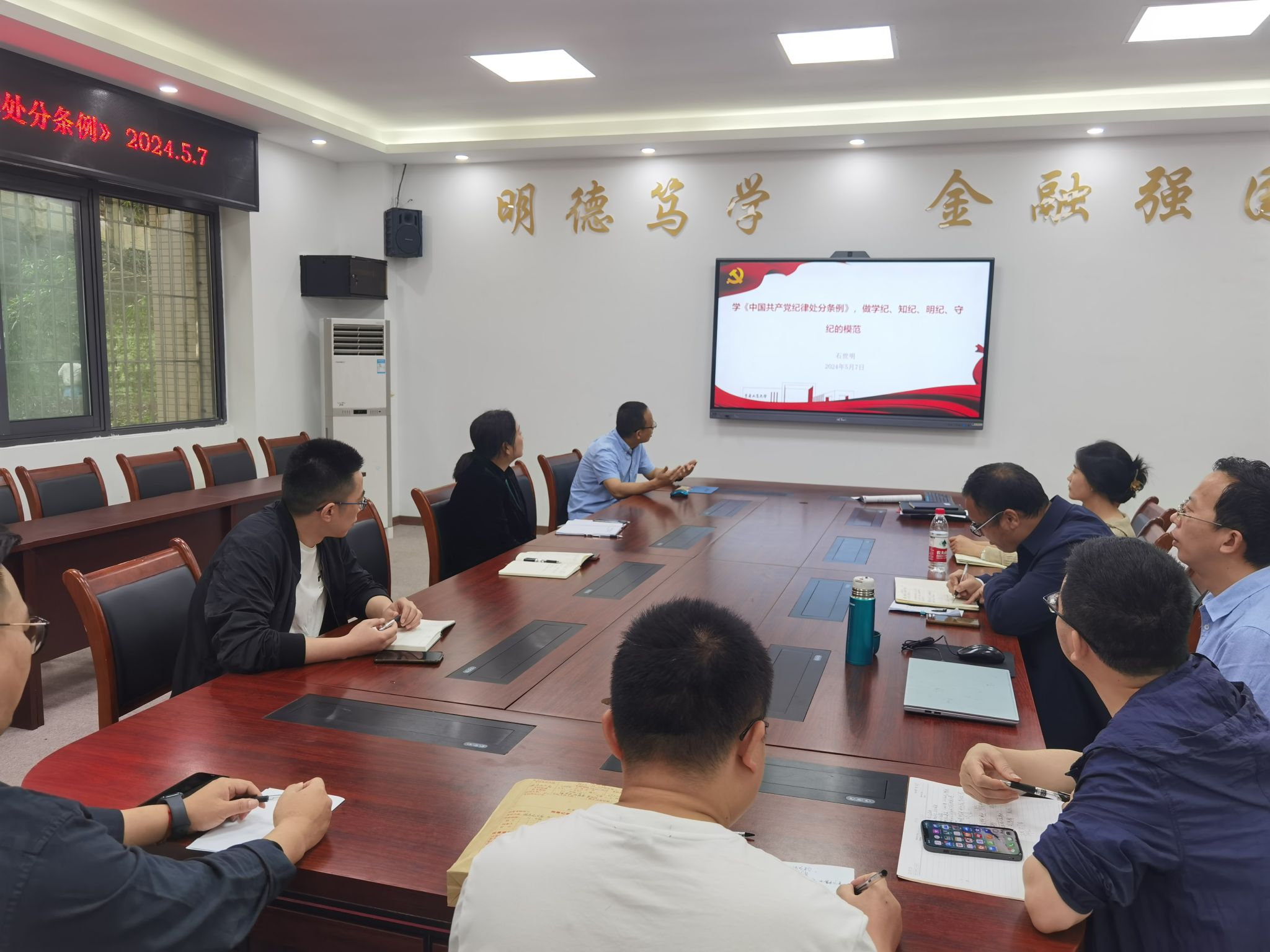 5月7日上午,菲律宾欧博游戏网召开党委理论学习中心组学习会暨党纪学习教育读书小组集体学习会,专题学习《中国共产党纪律处分条例》(简称《条例》),读书小组采取会前自学和会上集中学习相结合方式进行。学院全体党委委员、学院领导班子等参会。学院党委书记石世明主持学习会。