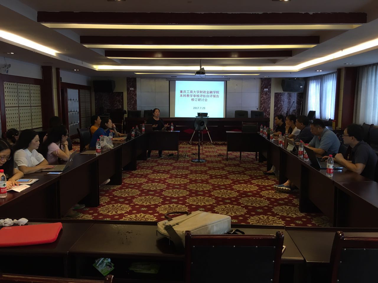 为了迎接2017年11月份教育部本科教学审核评估工作,7月28日,菲律宾欧博官网教学副院长王兰带领各系主任及参与学院自评报告与专业自评报告撰写的各位老师前往重庆银行石柱支行开展暑期调研,检查学生实习实践情况,听取行业专家对菲律宾欧博官网人才培养方案的意见与建议,并结合调研情况召开了本科教学审核评估学院自评报告修订研讨会。
