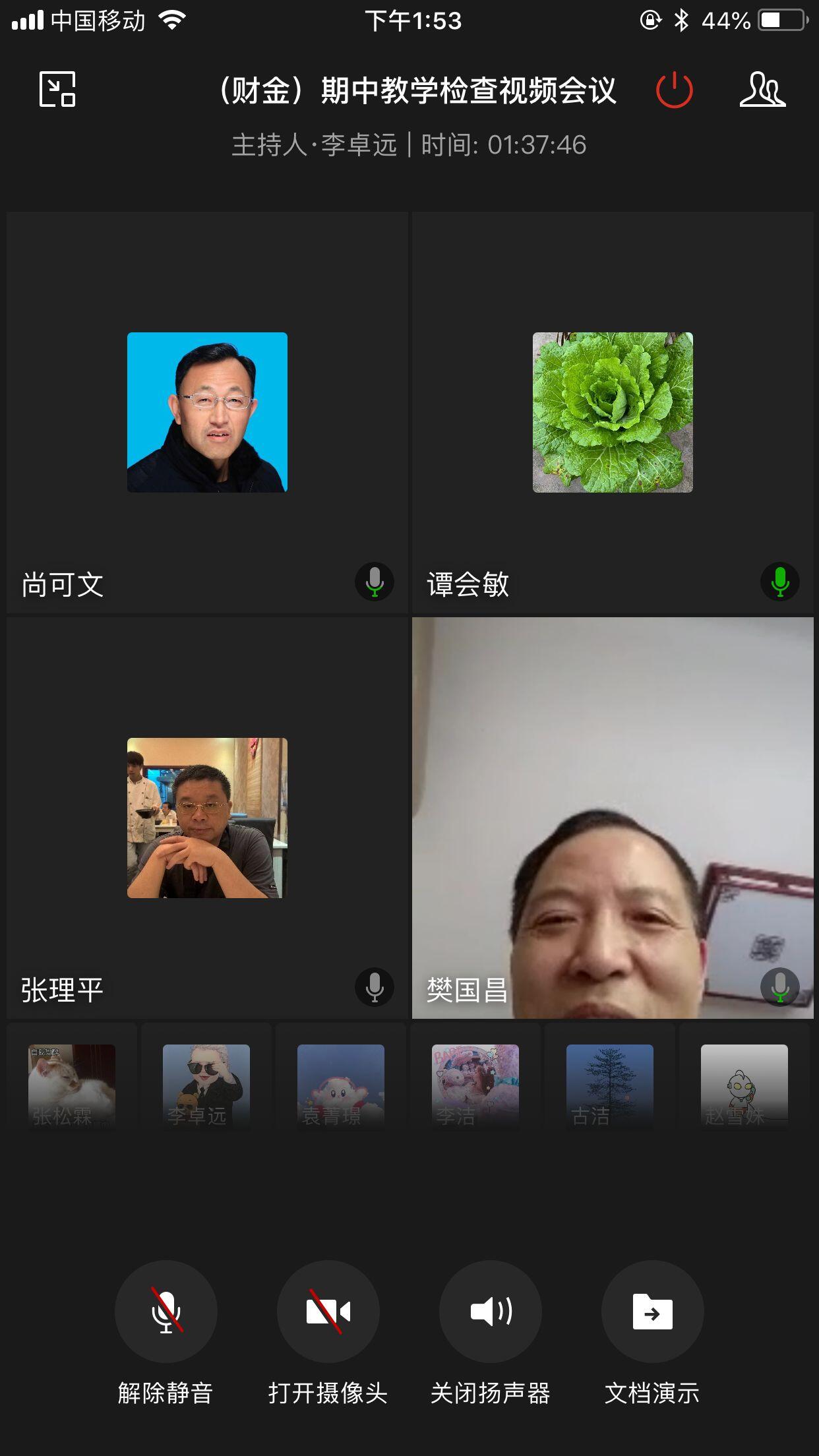 2020年4月29日,财政菲律宾欧博游戏网召开期中教学检查视频会议。会议由财政菲律宾欧博游戏网校级督导保险学系樊国昌教授主持。学院教学院长王兰教授、院级督导、各系主任和学院教学管理老师,2017级、2018级各班以及2019级CFA专业的学习委员参加了此次视频会议。