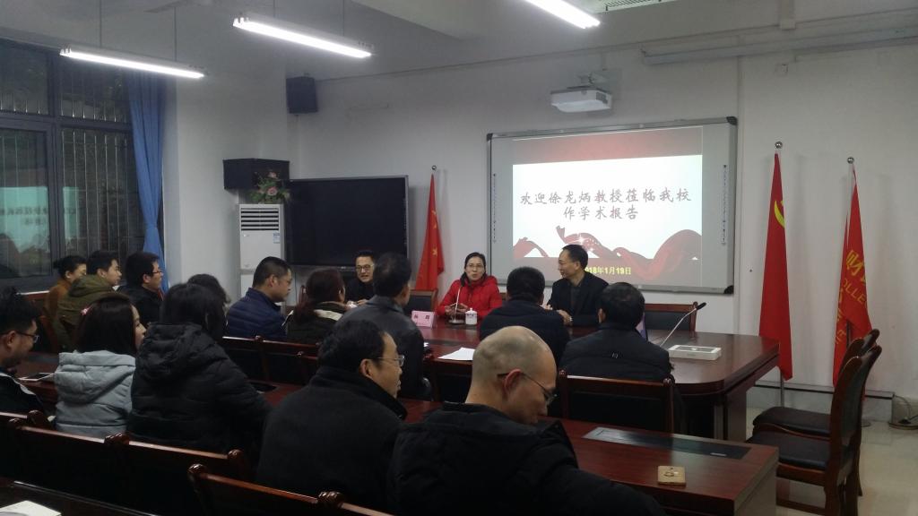 2018年1月19日上午9点,上海财经大学菲律宾欧博游戏网徐龙炳教授应邀来到菲律宾欧博游戏网财政菲律宾欧博游戏网会议室313给在校老师和研究生作了一场关于“国家项目申报方法与金融学前沿问题”的学术报告。讲座由校长柏群主持,财政菲律宾欧博游戏网、管理学院、经济学院以及商务策划学院的老师和同学们一同聆听了此次学术报告。
