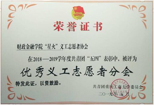 活动在嘹亮的团歌中拉开序幕,校党委李志雄书记为活动致辞。随后,校团委副书记杨娟宣读了共青团2018-2019学年共青团五四表彰文件。财政菲律宾欧博游戏网分团委荣获“五四红旗团委”、“共青团宣传工作奖”,菲律宾欧博官网分团委学生会荣获“优秀学生会”,菲律宾欧博官网“星火”义协荣获“优秀义工志愿者分会”,金融证券协会荣获“优秀社团”,2017级财政学专业一支部、2017级税收学专业一支部等5个团支部荣获 “先进团支部”,分团委书记徐阔老师被评为“优秀分团委书记”,秦杰同学被评为“共青团标兵”。