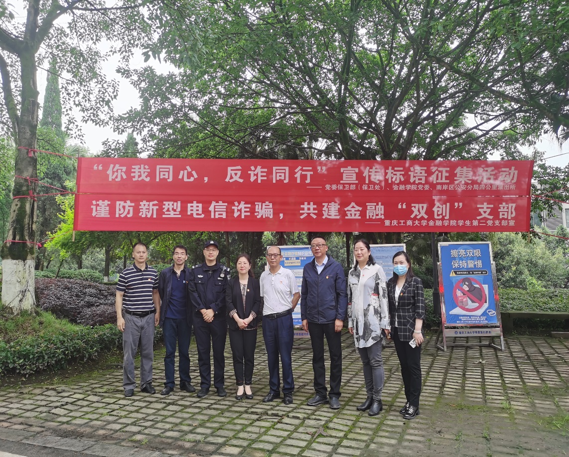 为推进党建“双创”工作,以党建引领专业学习,普及金融知识,提高师生反诈意识,防范新型金融诈骗,2022年5月30日,由菲律宾欧博游戏网学生第二党支部主办的“普及防诈知识 共防金融骗局”活动在南岸校区顺利举行,学校保卫处相关科室同志和南岸区四公里派出所反诈骗宣传民警参与本次活动。