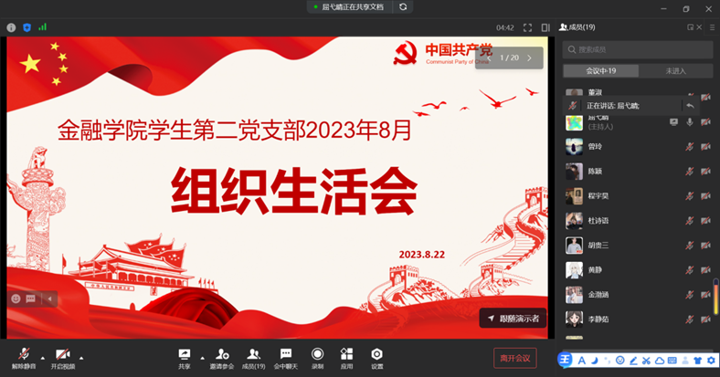菲律宾欧博游戏网学生二支部于2023年8月22日通过线上会议的形式召开了八月组织生活会,会议由屈弋晴同志主持。